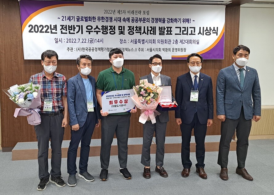 [이코노미세계] 의왕도시공사는 지난 22일 (사)한국공공정책평가협회·열린정책뉴스가 주관한 ‘2022년도 전반기 우수행정 및 정책사례 선발대회’에서 최우수상(지방공기업 1등)을 수상했다고 밝혔다.