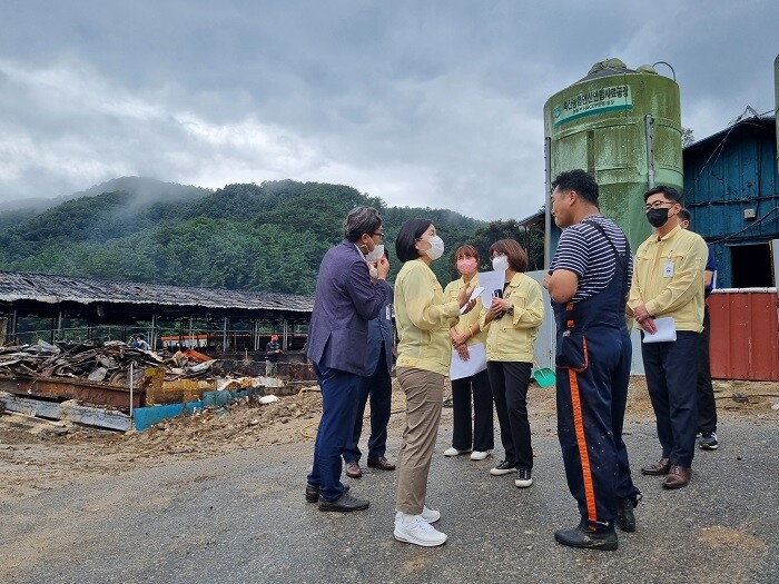 윤순옥 의장을 비롯한 의원들은 지난 2일 화재 현장을 방문해 농장주와 양평군 관계자로부터 사고 경위와 수습 상황에 대해 설명을 듣고 복구 방안 및 재발 방지 대책에 대해 논의했다.