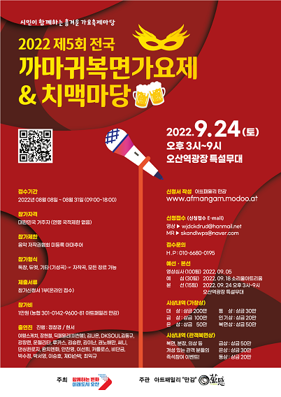 [이코노미세계] 오산시(시장 이권재)는 다음달( 9월 24일) 제5회 전국 까마귀 복면 가요제를 오산역광장 특설무대에서 4년만에 야외행사로 진행한다고 11일 밝혔다.