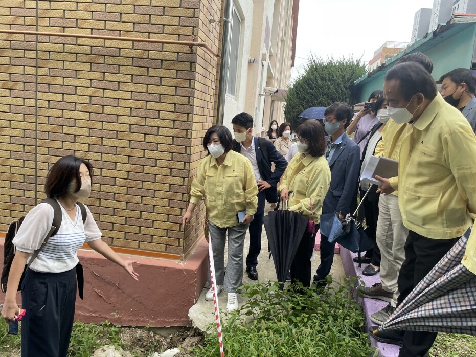 이날 현장에는 박경희 위원장을 포함한 행정교육위원회 소속 이덕수, 박은미, 성해련, 김윤환 의원이 참석한 가운데 학교 및 교육청 관계자들과 함께 학교 건물 외관 및 별관을 둘러싼 옹벽을 세밀하게 살펴보았으며, 안전진단 및 대책마련에 대해서도 심도 있게 논의하는 시간을 가졌다.