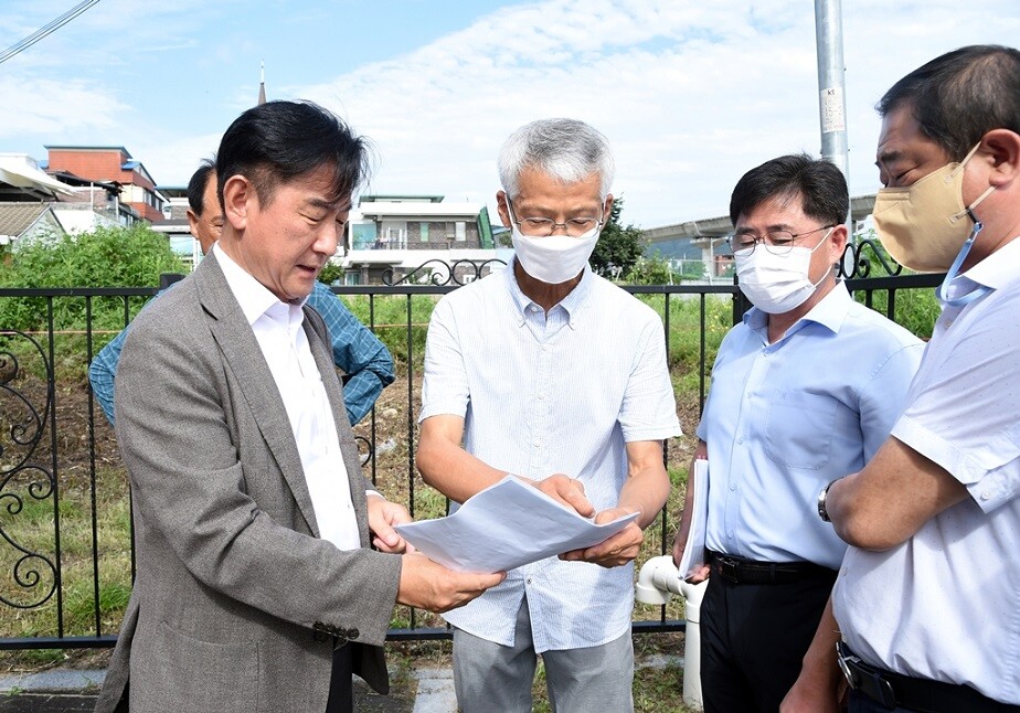 [이코노미세계] 김동근 의정부시장은 8월 24일 현장시장실에서 제기한 민원에 대해 애로사항을 빠르게 파악하기 위해 캠프 라과디아 지하주차장 건축 예정 현장을 방문했다. 지하주차장의 규모, 위치에 대한 확인을 위해서다.