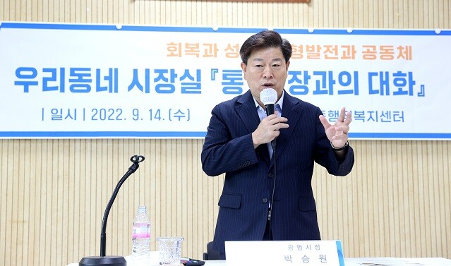 [이코노미세계] 박승원 광명시장은 지난 14일 소하2동에서 우리동네 시장실을 운영하며 지역주민들과의 소통행정을 이어가고 있다.