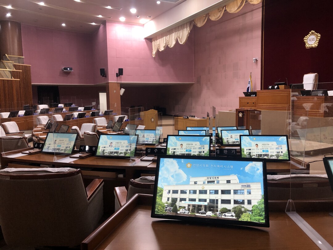 [이코노미세계] 안양시의회(의장 최병일)는 본회의장 전자회의시스템 설치 사업을 최근 완료하고 제278회 임시회(9.19.~9.30.)부터 본격적인 전자회의 운영에 들어갈 예정이라고 밝혔다.