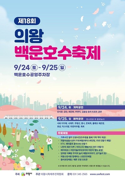 [이코노미세계] 의왕시의 대표 가을축제인 ‘제18회 의왕백운호수축제’가 오는 24, 25일 이틀간 백운호수 공영주차장에서 열린다.