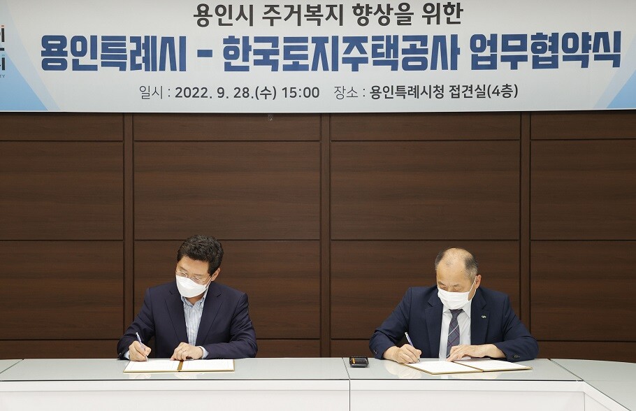 [이코노미세계] 용인특례시(시장 이상일)가 시민들의 주거 안정을 위해 한국토지주택공사(LH) 경기지역본부와 ‘주거복지 향상을 위한 업무 협약’을 맺었다고 28일 밝혔다.
