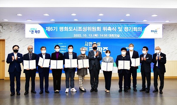 [이코노미세계] 파주시(시장 김경일)는 13일 시청 대회의실에서 2022년 파주시 평화도시조성위원회 위촉식 및 정기회의를 개최했다.