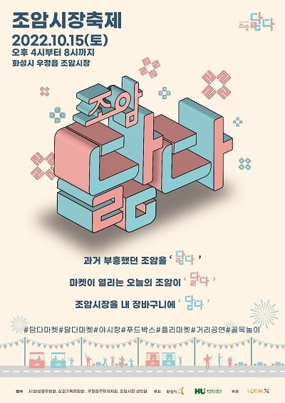 [이코노미세계] 화성도시공사(사장 김근영, 이하 HU공사)는 오는 15일 토요일 16시부터 20시까지 우정읍 조암시장 일대에서 ‘Festival 조암 닮다’를 개최한다고 밝혔다.