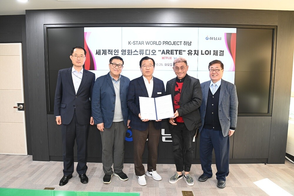 [이코노미세계] 하남시(시장 이현재)가 ‘아레떼 프로젝트’(ARETE Project) 협력의향서(LOI)를 체결하며 ‘K-스타월드 조성사업’의 주요시설 중 하나인 글로벌 영화제작 프로덕션 스튜디오 건설에 한 걸음 더 다가섰다.