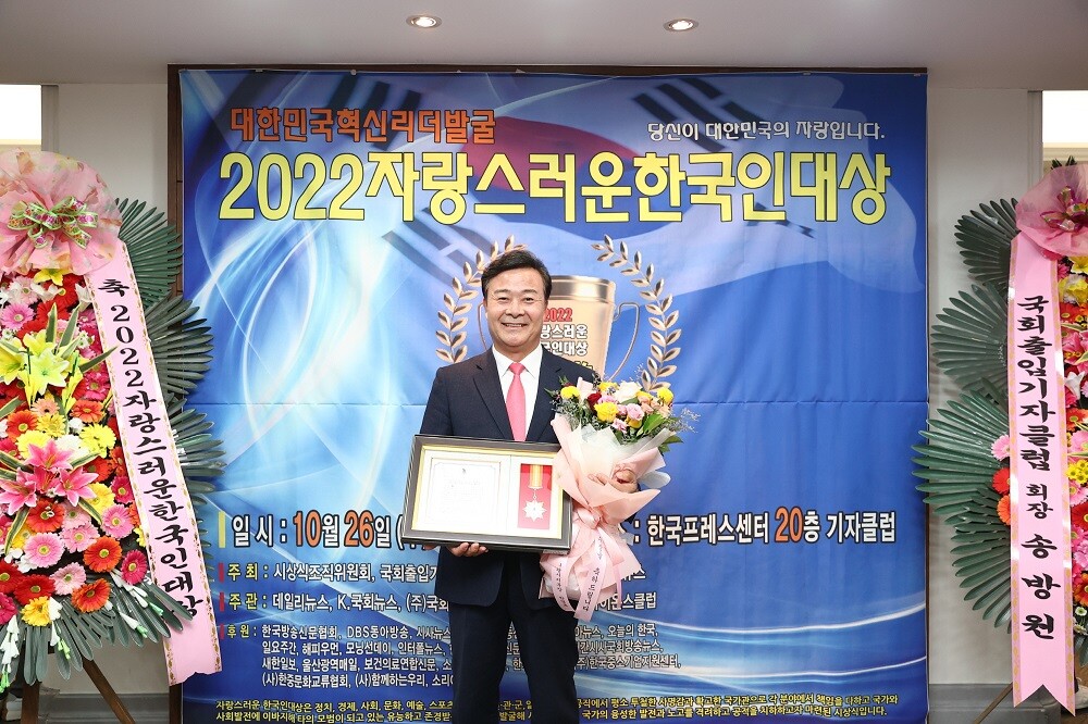 2022 자랑스러운 한국인 대상은 정치, 경제, 사회, 문화 및 공직에서 평소 투철한 사명감과 확고한 국가관으로 국가와 사회발전에 일조해온 유능한 인물을 발굴해 시상하는 행사로, 국회출입기자클럽 등이 주최하고 데일리뉴스 등이 주관했다.