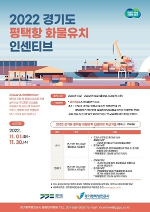[이코노미세계] 경기도와 경기평택항만공사는 11월 1일부터 11월 30일까지 "2022년 경기도 평택항 화물유치 인센티브"지원 신청을 접수 받는다.