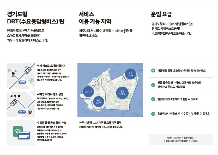 파주 부르미버스는 지난해 8월 경기도가 공모한 최초의 시범사업으로 선정됐으며, 대중교통 환승 할인이 적용되는 전국 최초의 사례다.