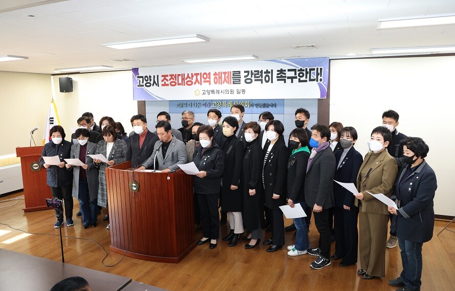 고양특례시의회 의원 일동은 “정부의 조정지역해제를 포함한 과감한 규제 지역 해제 발표를 적극 환영한다”면서, “그간 고양특례시의회는 두차례에 걸쳐 조정지역해제결의를 촉구하고 의원 각자 할 수 있는 모든 노력을 기울였다”고 전했다.