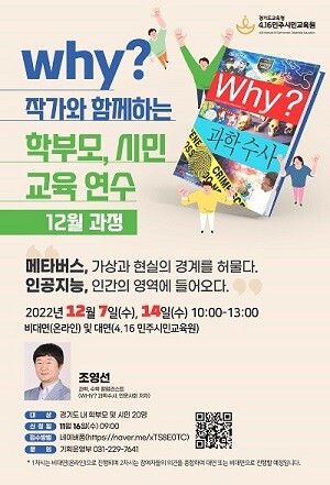 [이코노미세계] 4.16민주시민교육원(원장 전명선)은 12월 7일과 14일, 도내 학부모와 시민을 대상으로 ‘Why? 작가와 함께하는 학부모, 시민 교육’을 진행한다.