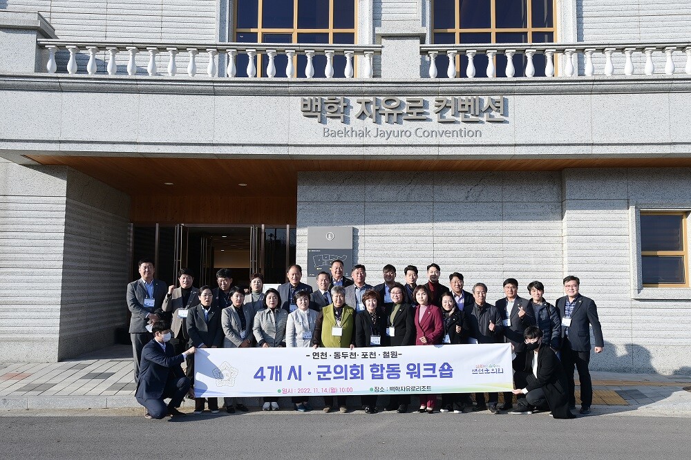 [이코노미세계] 연천군의회(의장 심상금)는 지난 14일 백학자유로리조트 세미나실에서 동두천시․포천시․철원군 의회 의원들과 함께 상생협력을 위한 4개 시․군의회 합동워크숍을 개최했다.