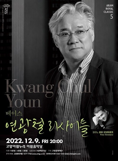 [이코노미세계] 고양문화재단(대표이사 정재왈)은 기획공연 시리즈 ‘2022 아람 로열 클래식’의 마지막 무대로 슈베르트, 슈만, 슈트라우스의 독일가곡과 우리말 가곡을 만날 수 있는 <베이스 연광철 리사이틀>을 오는 12월 9일 오후 8시, 고양아람누리 아람음악당에서 개최한다. 그의 고양 무대는 지난 2012년 고양국제음악제 이후 정확히 10년 만이다.