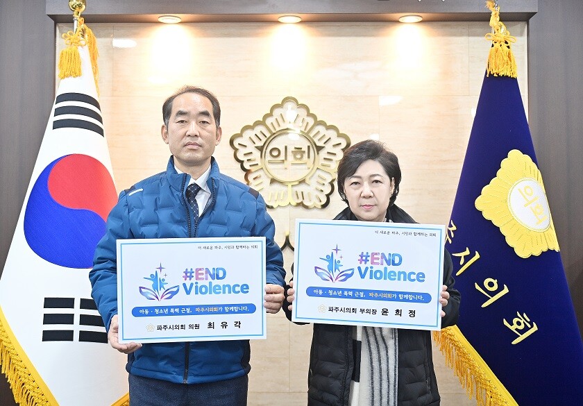 [이코노미세계] 파주시의회 윤희정, 최유각 의원은 1일 아동 폭력근절 온라인 캠페인 ‘ENDviolence 챌린지’에 동참했다.