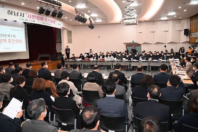 [이코노미세계] 하남시(시장 이현재)는 12일 시민대표와 간부공무원이 함께 하는 제2차 시민참여 주간회의를 개최하여, 시정 현안을 공유하고 발전 방향에 대해 토론하는 시간을 가졌다.