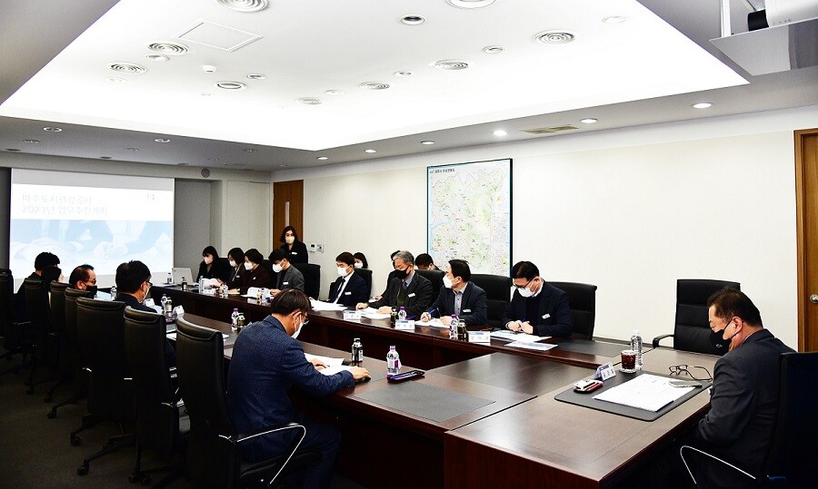 이날 보고회에는 김경일 파주시장을 비롯해 재정경제국장, 도시발전국장 등 시 대행사업 국장들과, 정학조 파주도시관광공사 사장, 경영관리본부장, 도시관광개발본부장 등 공사 임원 전원이 참석했다.