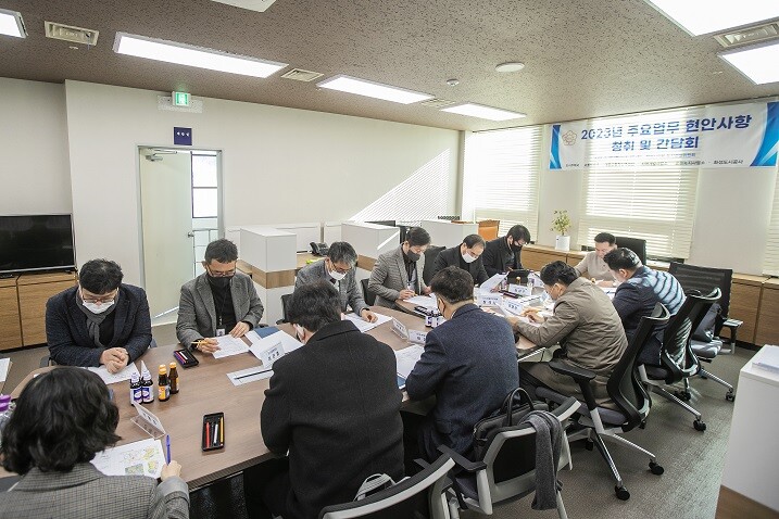 [이코노미세계] 화성시의회 도시건설위원회(위원장 정흥범)는 16일 2023년 주요업무 현안사항 청취 및 간담회를 개최했다.