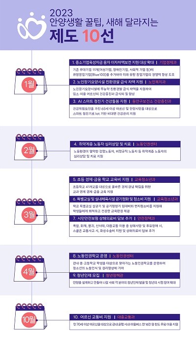 △ 만 70세 이상 어르신 버스 무료 이용 = 올해 연말부터 만 70세 이상 어르신은 관내 운행하는 시내·마을 버스를 무료로 이용할 수 있게 될 예정이다. 지원금액은 1인당 분기별 4만원으로 연간 16만원 한도다.