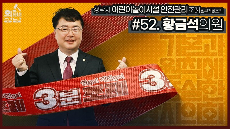 ‘성남시의회 3분 조례’는 유튜브 채널을 통하여 성남시의회 의원들이 발의하여 시행되는 조례를 시민들이 알기 쉽도록 설명하는 콘텐츠이다.
