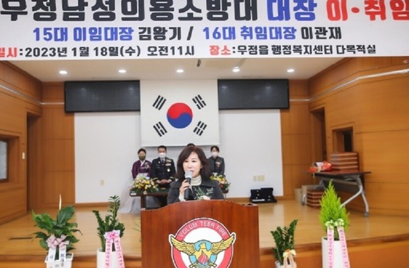 이 날 행사에는 김경희 의장과 조오순 경제환경위원장을 비롯한 우정읍장, 화성소방서장 등 60여 명이 참석한 가운데 감사패 및 임용장 전달, 이·취임사, 축사 등으로 진행됐다.