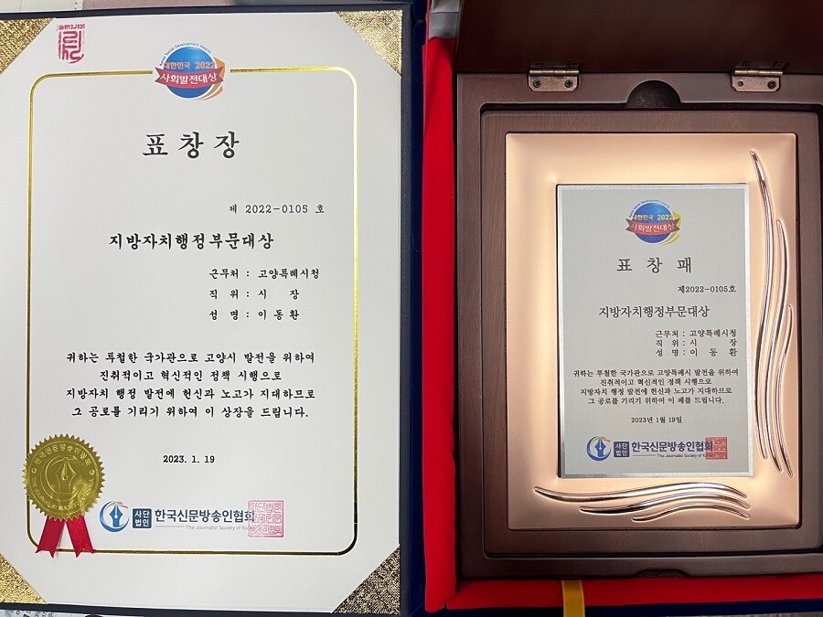 이 시장은 이어 “취임 당시 시민과 한 약속을 지키기 위해 경제자족도시로 발돋움하기 위한 시책을 추진해온 성과를 인정받아서 기쁘다. 앞으로도 시민들이 변화된 고양시를 느낄 수 있도록 힘쓰겠다”고 전했다.