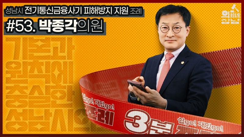 이번에 소개된 조례는 박종각 의원 등 31명이 공동발의한 ‘성남시 전기통신금융사기 피해방지 지원 조례’이다.