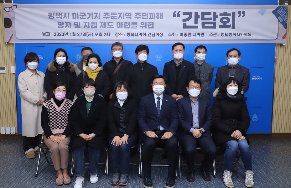 [이코노미세계] 평택시의회 이종원 의원은 27일 시의회 3층 간담회장에서 ‘평택시 미군기지 주둔지역 주민피해 방지 및 지원 제도 마련을 위한 간담회’를 개최했다.