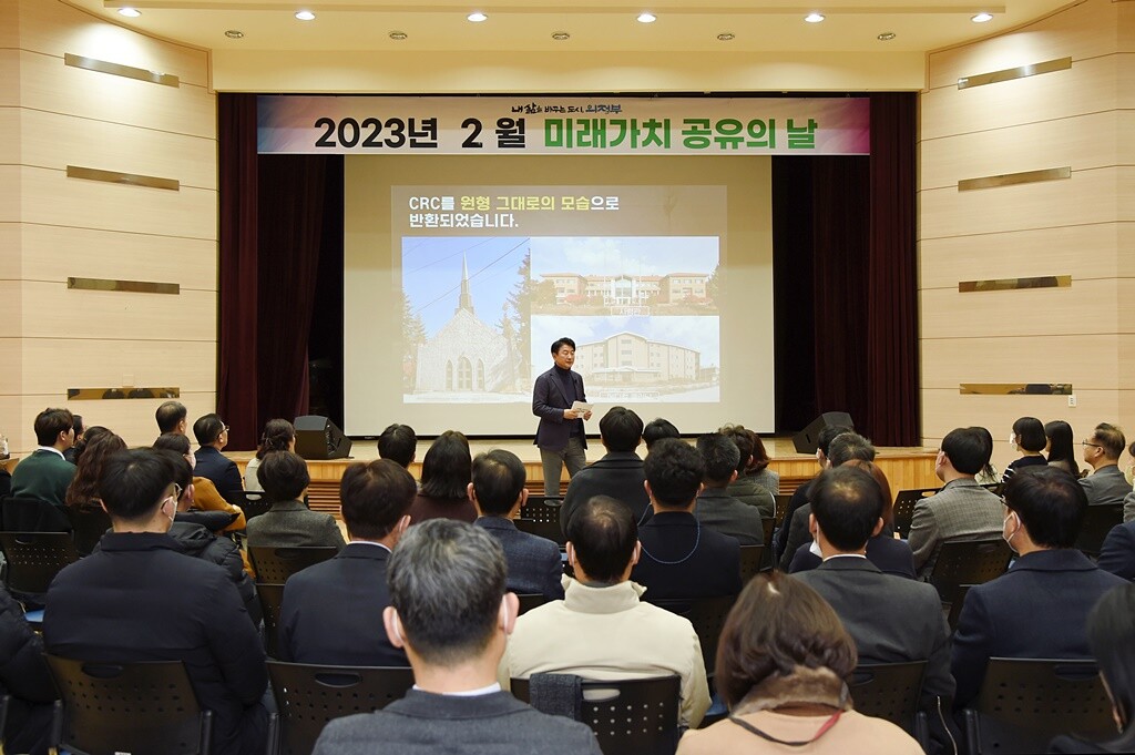 이번 공유의 날에서 다룬 미래가치는 ‘문화’로써 김동근 시장이‘CRC(캠프레드클라우드) 디자인클러스터’를 주제로, 역사의 유산을 활용하여 디자인문화 산업의 메카로 도약하는 지속 발전 가능한 의정부의 미래 모습에 대해 설명했다.