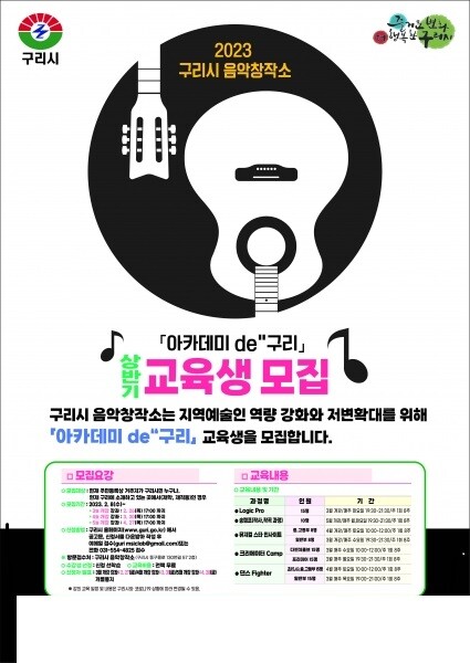 [이코노미세계] 구리시는 오는 3월부터 구리시 음악창작소에서 구리시민의 잠재적 예술인 양성을 위한 “2023 아카데미 de’구리”를 시작한다.