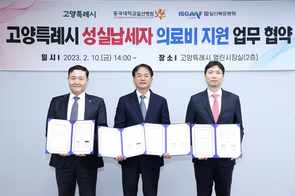 [이코노미세계] 고양특례시(시장 이동환)가 올해부터 성실납세자에게 의료비 우대 혜택을 제공한다. 시는 2월 10일 고양시청에서 동국대학교 일산불교병원, 일산복음병원 관계자와 함께 업무협약을 체결했다.
