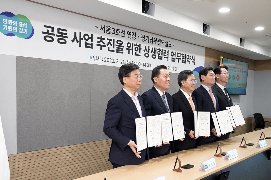 신 시장은 이날 오후 2시 경기도청 5층 상황실에서 김동연 경기도지사, 이재준 수원특례시장, 이상일 용인특례시장, 정명근 화성시장 등이 참석한 가운데 ‘서울지하철 3호선 연장·경기남부 광역철도 공동사업 추진을 위한 상생 협약’을 체결했다며 이같이 말했다.