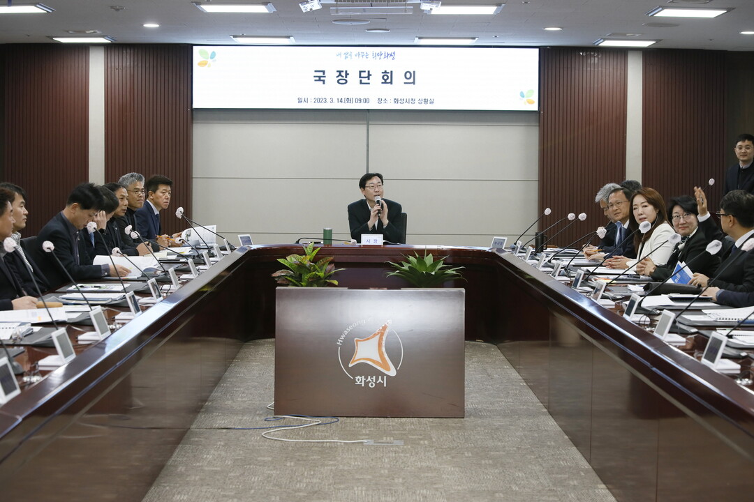 [이코노미세계] 화성시가 14일, 상황실에서 실·국장 이상 간부, 주요 부서장 및 공공기관장 등 60여명이 참석한 가운데 국장단회의를 열고 청렴실천 의지를 다졌다.