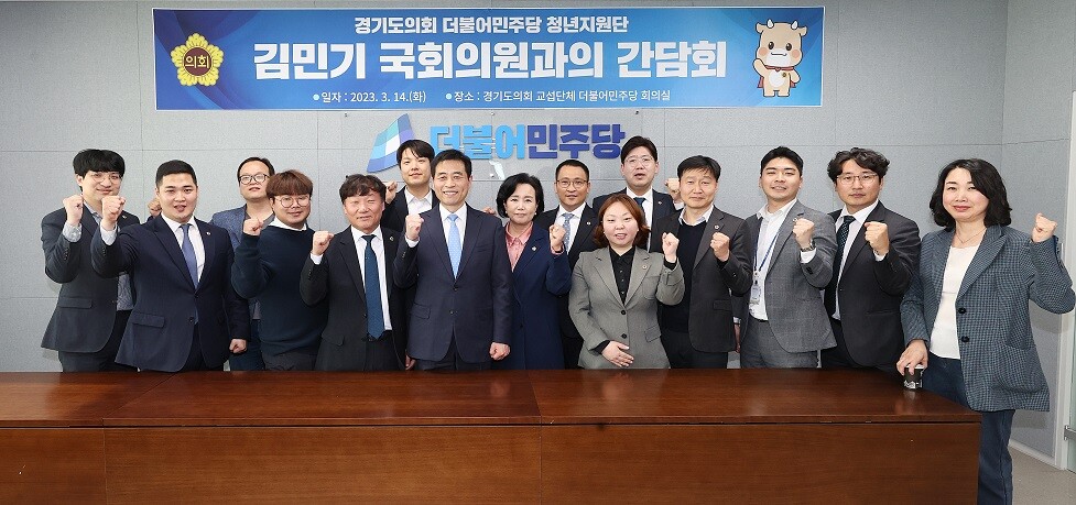 [이코노미세계] 경기도의회 더불어민주당 청년지원단(김태희 단장, 안산2)이 14일 경기도의회 더불어민주당 회의실에서 김민기 국회의원(용인을)을 초청해 의정활동 노하우를 전해 듣는 간담회를 진행했다.