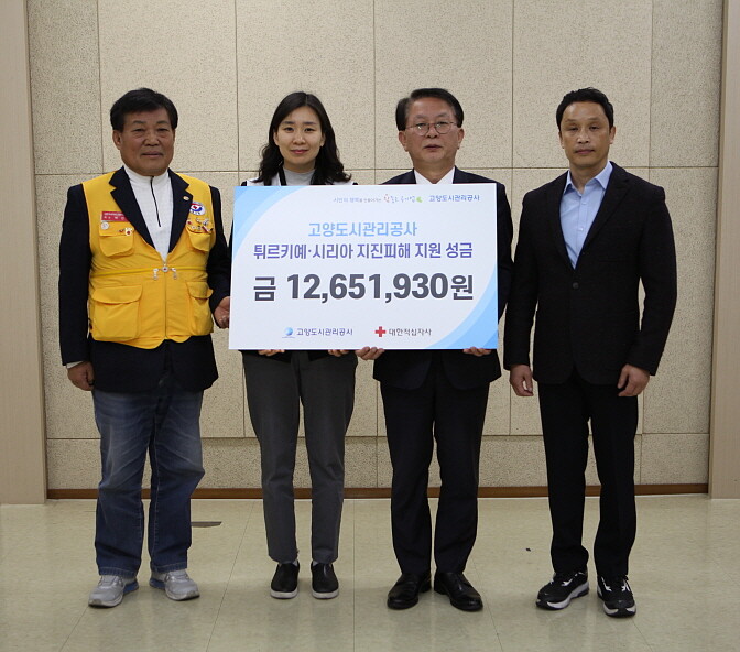 [이코노미세계] 고양도시관리공사(사장 안병구)는 23일 튀르키예․시리아 지진피해 복구를 위한 성금 1,200만여 원을 적십자사에 기탁했다.