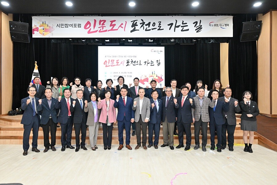 [이코노미세계] 포천시는 지난 23일 포천시 여성회관 청성홀에서 백영현 포천시장을 비롯해 포천시 각계각층의 기관 단체장으로 구성된 인문도시 조성 추진협의회 위원과 시민 등 200여 명이 함께한 가운데 시민 참여 포럼 ‘인문도시 포천으로 가는 길’을 개최했다.