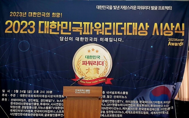 대한민국 파워리더대상 조직위원회와 한국언론연합회가 주최·주관한 제8회 2023 대한민국 파워리더대상은 정치, 경제, 행정, 의정, 국가(사회)공헌, 혁신경영, 의료, 교육 등 각 분야에서 뛰어난 리더쉽과 우수한 전문성을 바탕으로 헌신적인 노력과 책임을 다하고 미래발전에 공헌한 인물을 선정해 수상한다.