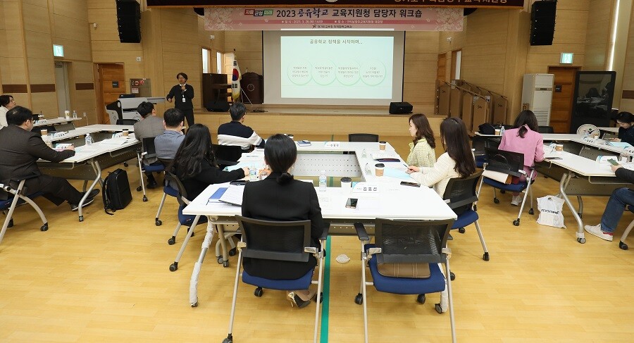 도교육청은 25개 교육지원청의 정책 방향을 공유하기 위해 28일 오후 구리남양주교육지원청에서 업무담당자 50명을 대상으로 ‘지역 맞춤형 공유학교 담당자 워크숍’을 실시했다.