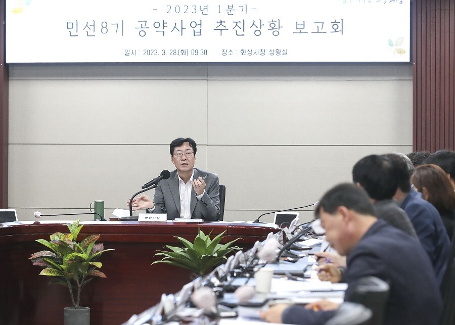 [이코노미세계] 화성시(시장 정명근)는 28일 시청 상황실에서 정명근 시장 주재로 민선8기 공약 추진상황 보고회를 개최했다.