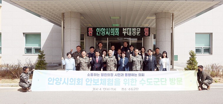 [이코노미세계] 안양시의회(의장 최병일)는 지난 12일 안보체험을 위해 수도군단(군단장 고창준)을 방문했다.