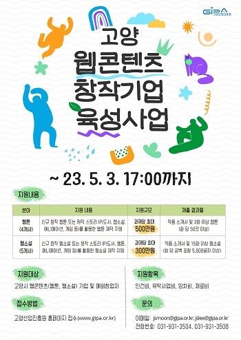 [이코노미세계] 고양산업진흥원(원장 오창희, 이하 진흥원)은 ‘고양 웹콘텐츠 창작기업 육성 사업’의 참여기업을 모집한다.