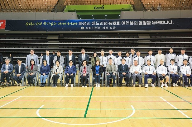 [이코노미세계] 화성시의회는 30일 화성종합경기타운에서 열린 제4회 화성시의장기 배드민턴 대회에 참석해 참가 선수들을 격려했다.