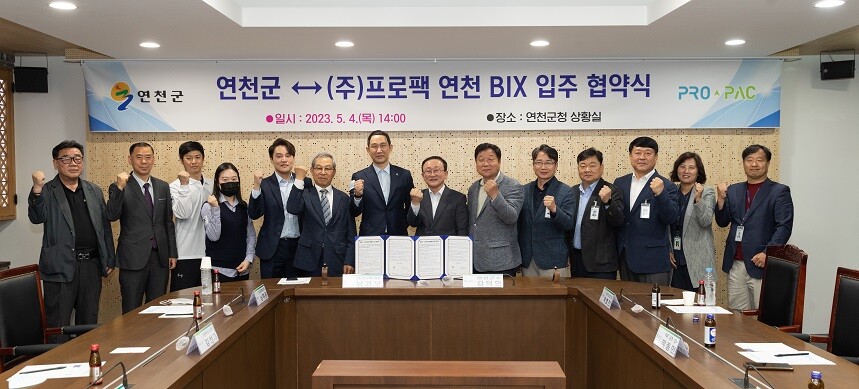 [이코노미세계] 연천군은 최근 본관 2층 상황실에서 김덕현 군수, ㈜프로팩 남경보 대표 등 관계자가 참석한 가운데 연천BIX 입주 협약을 체결했다고 9일 밝혔다.