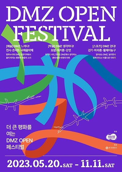 [이코노미세계] ‘더 큰 평화’를 목표로 경기도가 주최하고 경기관광공사가 주관하는 2023년 ‘디엠지 오픈 페스티벌(DMZ OPEN Festival)’이 오는 20일 디엠지(DMZ. 비무장지대) 평화걷기 행사를 시작으로 11월까지 대장정의 막을 올린다. 이번 행사는 정전 70년을 맞아 마련됐다.