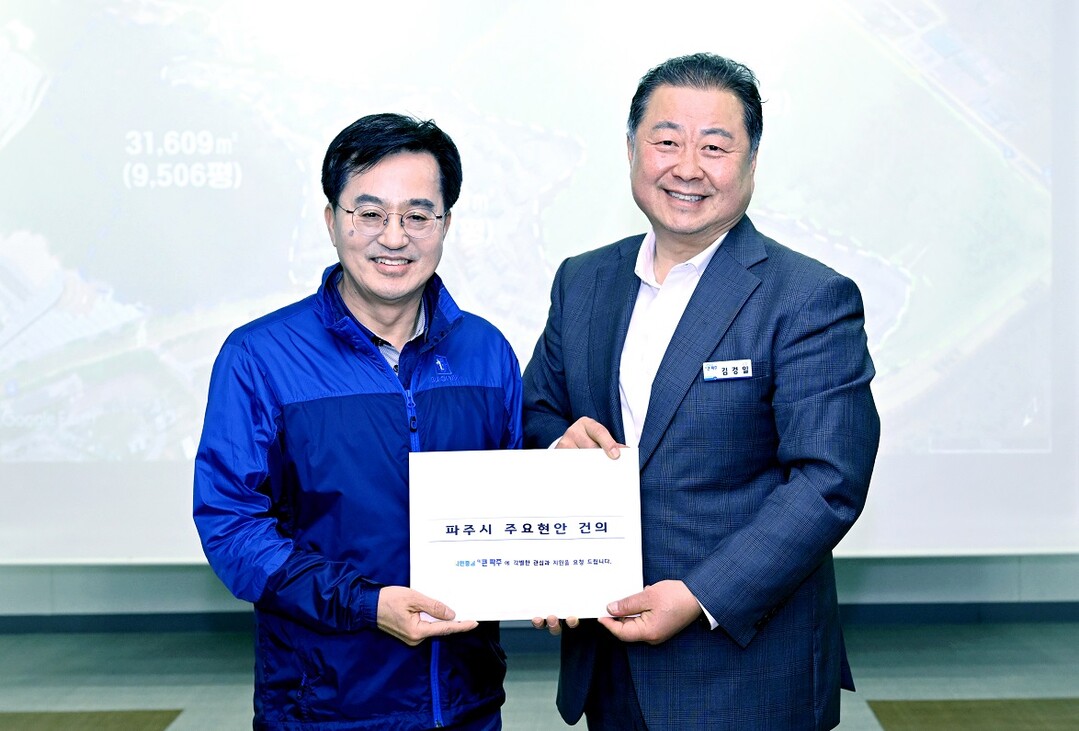 또한 ▲2024~2025년 경기도종합체육대회의 안전하고 성공적인 개최를 위한 경기장 시설개선 ▲농촌지역 에너지복지를 위한 도시가스 배관망 공급사업비 등 도비지원 ▲파주시의 평화경제자유구역 지정 필요성 ▲파주희망프로젝트 3단계 산업단지 물량 우선 배정 등 예산지원 7건과 현안사항 지원 6건 등 15건의 지역 현안을 건의서에 담아 전달했다.
