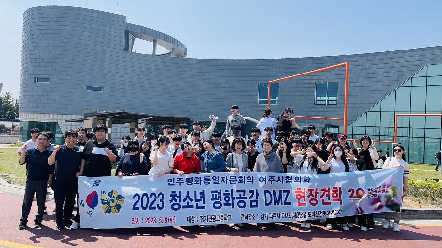 [이코노미세계] 민주평화통일자문회의 여주시협의회(회장 김영자, 이하 민주평통 여주시협의회)에서는 지난 9일 파주 민통선으로 ‘청소년 평화공감 DMZ 현장견학’을 다녀왔다고 밝혔다. 이번 견학에는 경기관광고등학교(교장 김영환) 3학년 학생들과 교사, 민주평통 여주시협의회 자문위원 등 80여 명이 참석했다.