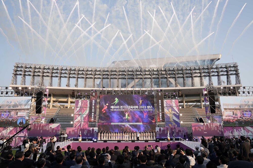 [이코노미세계] 신상진 성남시장은 11일 오후 성남종합운동장 주경기장에서 열린 ‘제69회 경기도체육대회 2023 성남’개회식에 참석했다.
