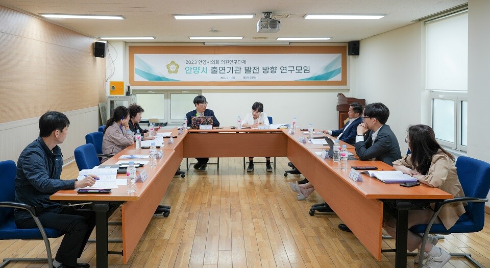 한편 「안양시 출연기관 발전 방향 연구모임」은 지난 3월 타 지자체 출연기관 장·단점 비교·분석 및 우리시 출연기관 경영평가 분석을 토대로 지속가능한 발전방향을 제시하고자 윤경숙 대표의원을 비롯하여 김보영, 김정중, 조지영, 장명희, 김도현, 곽동윤 의원 총 7명으로 지난 구성되어 활동해 오고 있다.
