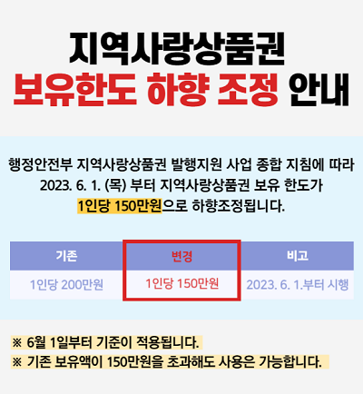 이로써, 기존 150만 원 이상 보유 중인 시민은 사용에 문제가 없지만, 6월 1일부터는 추가 구매(충전)가 불가능해 잔액을 소비해야 구매할 수 있다.